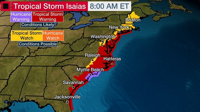 Hurricane Warning Issued as Tropical Storm Isaias Takes Aim at Carolinas, East Coast
