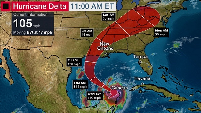 Hurricane Delta Likely to Become Record-Breaking 10th Mainland U.S. Landfall of 2020 Hurricane Season