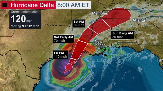 Major Hurricane Delta Tracking Toward Gulf Coast With Storm Surge, Winds, Flooding Rain in Laura-Weary Louisiana