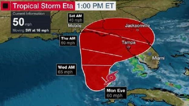 Eta Expected to Track toward South Florida as a Tropical Storm