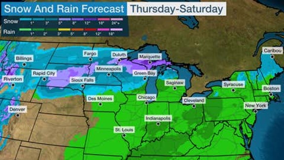 Friday -Friday night: Snow, or a mix of rain and snow, and increasing winds from this storm should be widespread and impact areas from South Dakota and northern Nebraska into central Minnesota, northern Wisconsin and the Upper Peninsula of Michigan. Rain could change to snow as far south as northern Iowa, southern Minnesota, southern Wisconsin and northern Illinois by later Friday or Friday night.