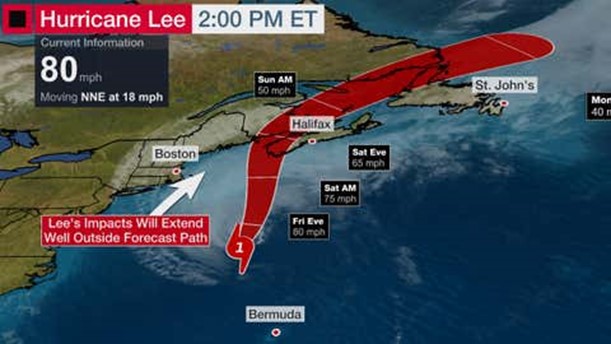 Hurricane Lee Nearing New England, Canada with Strong Winds, Rain, Coastal Flooding