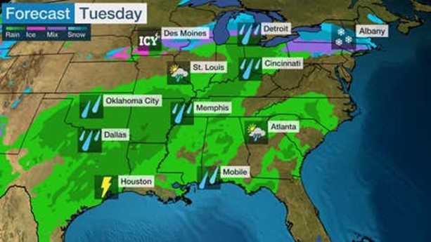 Winter Storm Bringing Snow, Ice to Great Lakes, Northeast. Southern Heavy Rain Could Produce Flooding While Also Bringing Drought Help