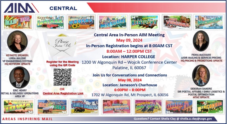 You may remember this meeting as the Great Lakes Focus Group Meeting. It is now called the Central Area AIM (Area's Inspiring Mail) Meeting.