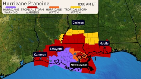 Hurricane Francine to Make Landfall in Louisiana Wednesday with Severe Weather