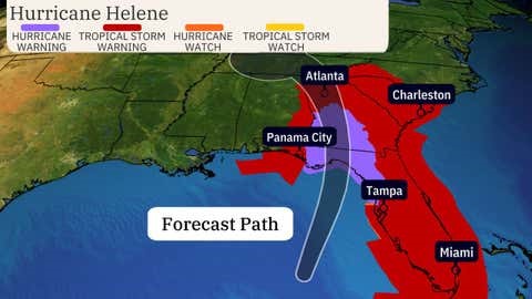 Hurricane Helene has made landfall as a Category 4 hurricane near Perry, Florida, bringing devastating storm surge, severe winds and heavy rain. At least three people have died as a result. The storm ripped down trees and power lines and sent storm surge rushing over streets and into homes and businesses.