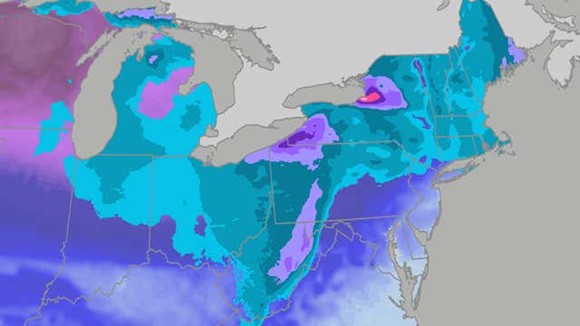 A consistent wind pattern has set up across the Great Lakes that will continue to produce bands of lake-effect snow through New Year’s Eve, potentially adding an additional 2 feet of snow for the snowbelts in New York and Pennsylvania. Strong winds gusting up to 35 mph combined with heavy snow could cause poor visibility on the roads, potentially making travel hazardous. A frontal system moving through the Northeast could also prompt snow squall warnings overnight into New Year’s Day, and it could even bring a few flakes to New York City for the ball drop to ring in 2026.