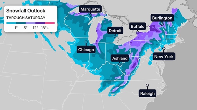 Multiple systems are pushing across the Northern Tier of the country this week, bringing heavy snow to the Great Lakes, Ohio Valley and Northeast.