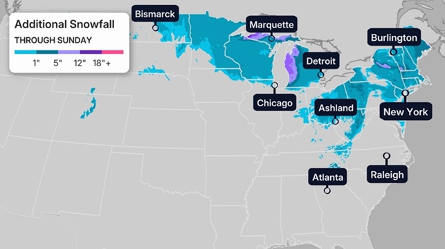 A Parade of Snowy Systems Will Continue to Bring Snow, Wind and Extreme Cold Across the East Through the Weekend